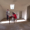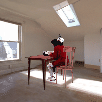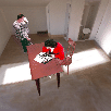 Cubic interpolation was used to synthesize camera angles between these key points. These parameters were used to pre-render and store several views of the three-dimensional model of the attic which are recalled and used as backgrounds before the characters are composited into the frame. Since the actors were shot from a limited number of angles, the resulting composited output might look slightly odd if the virtual camera is far from any real captured angle.