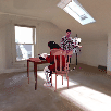 The virtual acoustics of the attic are smoothly interpolated between two extremes, as are the volumes of the ambient sounds in the attic. A small room with no echo or reverberation is at one extreme (John's perspective), while a much larger and softer room with a lot of reverberation is at the other extreme (Kathy's perspective).